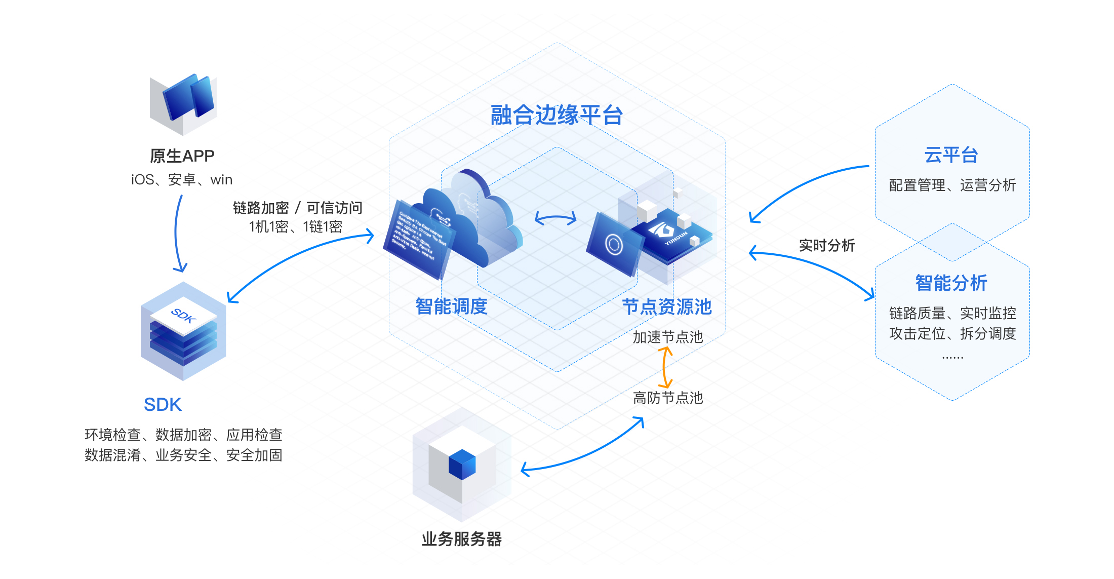 满足移动应用、PC端和H5游戏等多种场景的安全需求,能够有效抵御大规模流量攻击和CC攻击;提供智能加速功能,确保游戏流畅运行。对应用进行安全加固,防止游戏币被非法交易,防止作弊行为。
